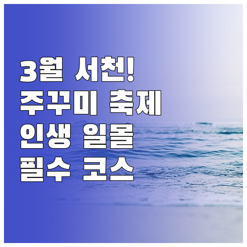 - 서천 동백꽃 주꾸미 축제: 제철 주꾸미의 쫄깃한 식감과 다양한 체험 행사를 즐기세요.